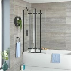Milano Nero – Black Frameless Sliding Bath Shower Screen