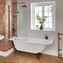 Milano Legend – White Traditional Freestanding Corner Shower Bath With Screen – 1685mm X 750mm – Choice Of Feet And Left/Right Hand Options