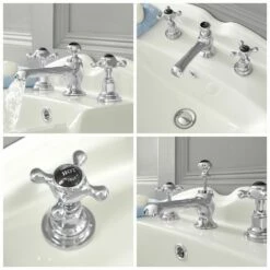 Milano Elizabeth – Traditional 3 Tap-Hole Crosshead Basin Mixer Tap – Chrome And White