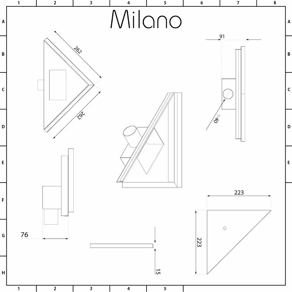 - Overall Dimensions: L 262 x W 262 x H 91mm