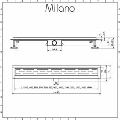 The Milano 800mm linear stainless steel shower drain with grate creates a neat, seamless finish to any wetroom. Made from 304 grade stainless steel, this durable shower drain quickly drains water away at an excellent flow rate of 32 litres per minute. The drain is supplied with a waterproof membrane, as well as adjustable legs to make installation easier. It features a 40mm horizontal outlet with a 50mm outlet adapter.