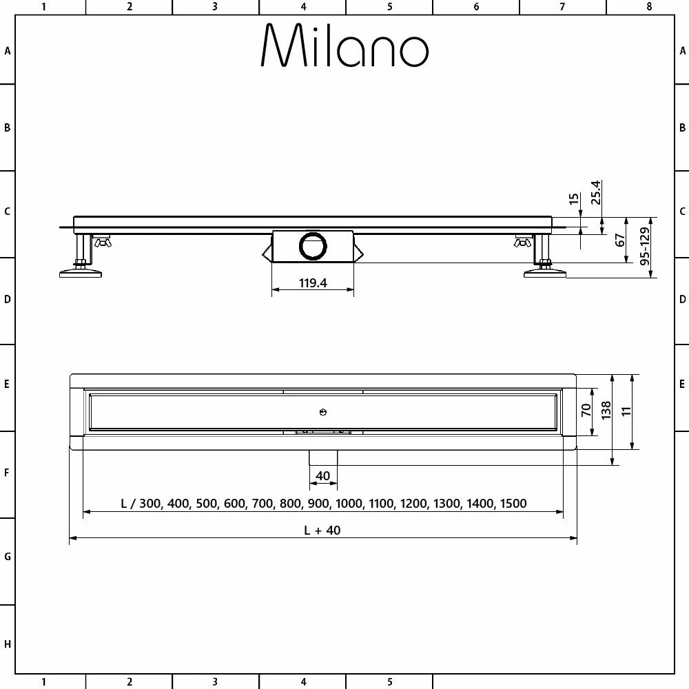 - Outlet pipe of the drain is 50mm diameter