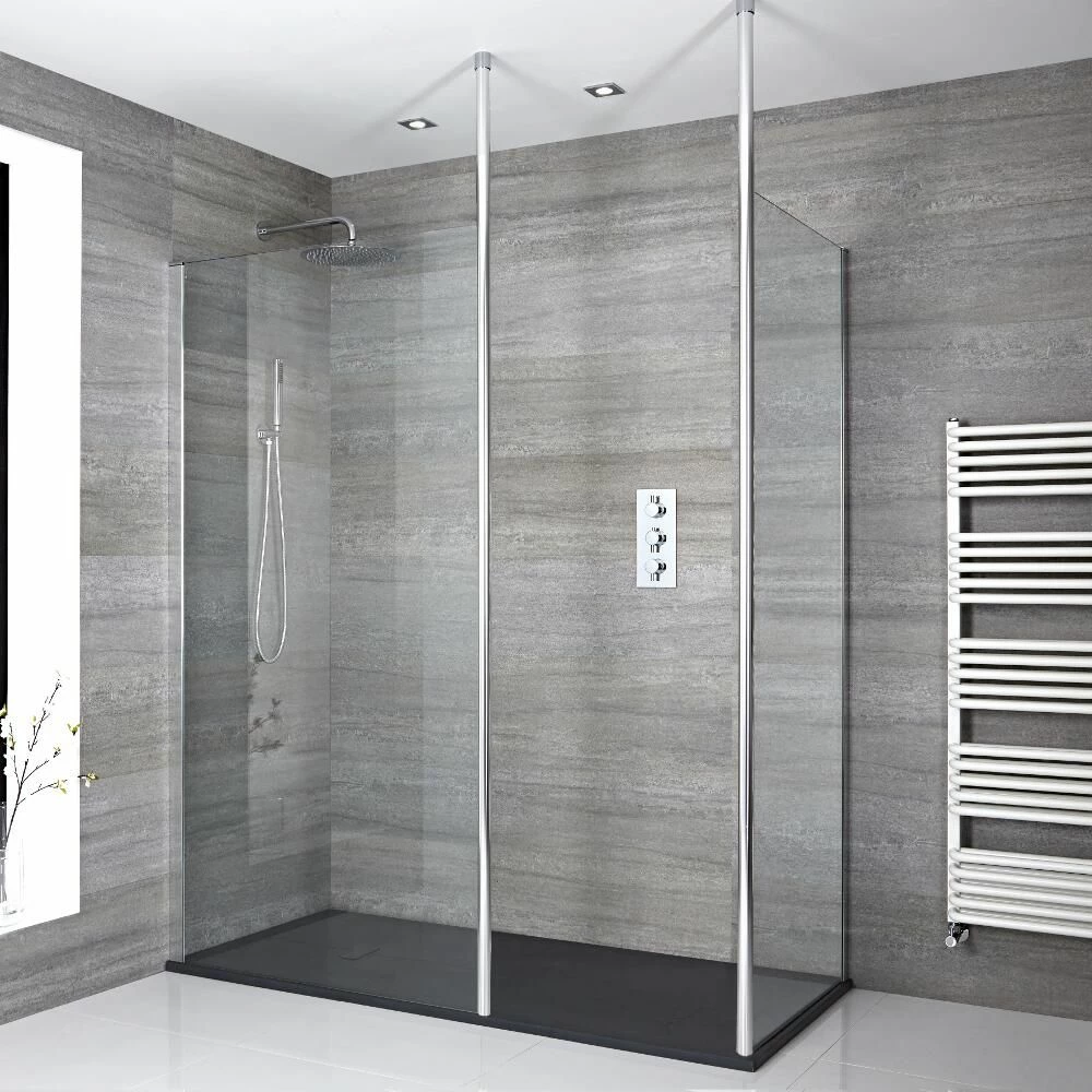 Offering a generous showering area and featuring 8mm toughened safety glass for strength, the glass panels stand 1950mm tall to enable more shower splashes to be contained.