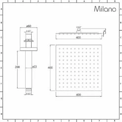 - Shower head dimensions: W 400mm x D 400mm x H 2mm