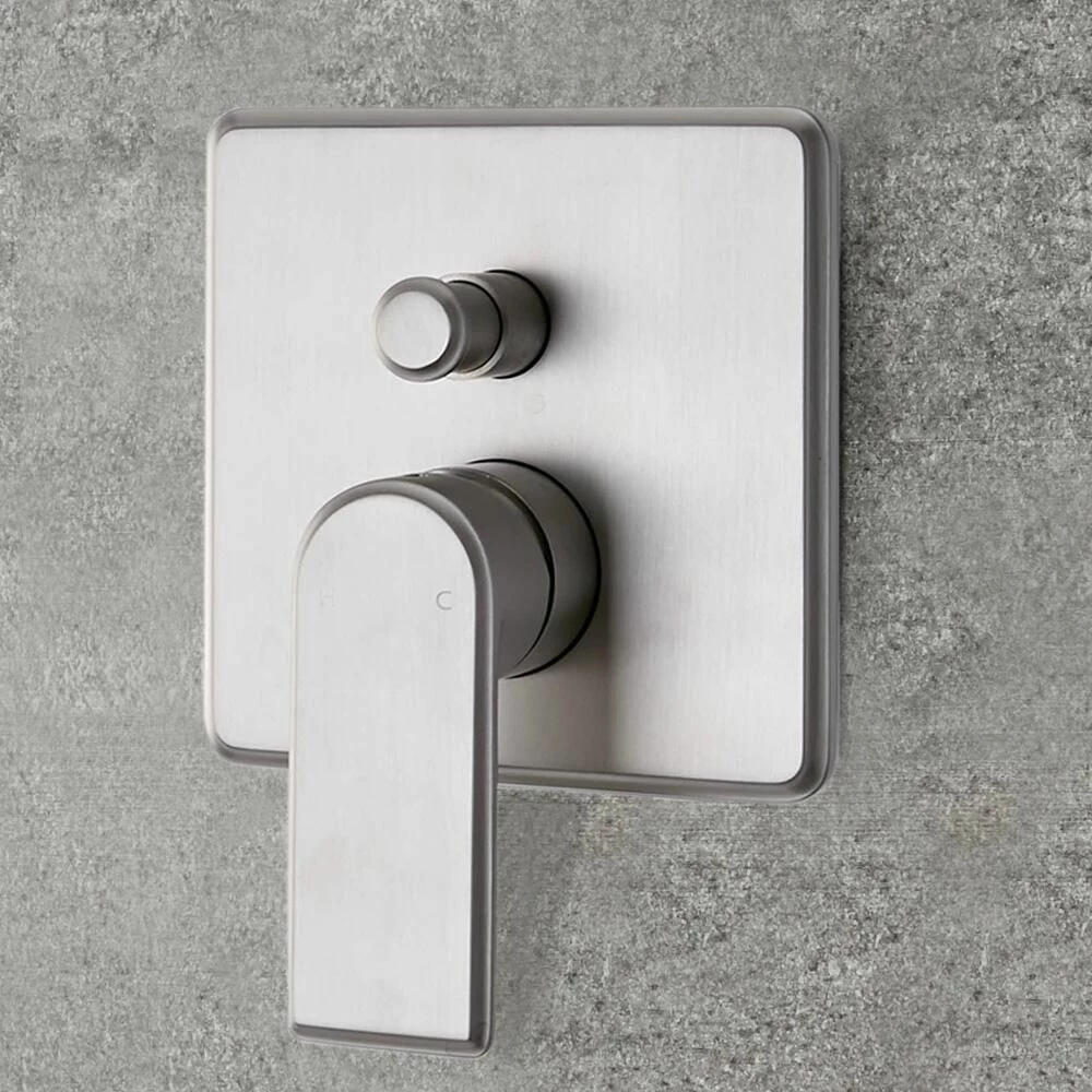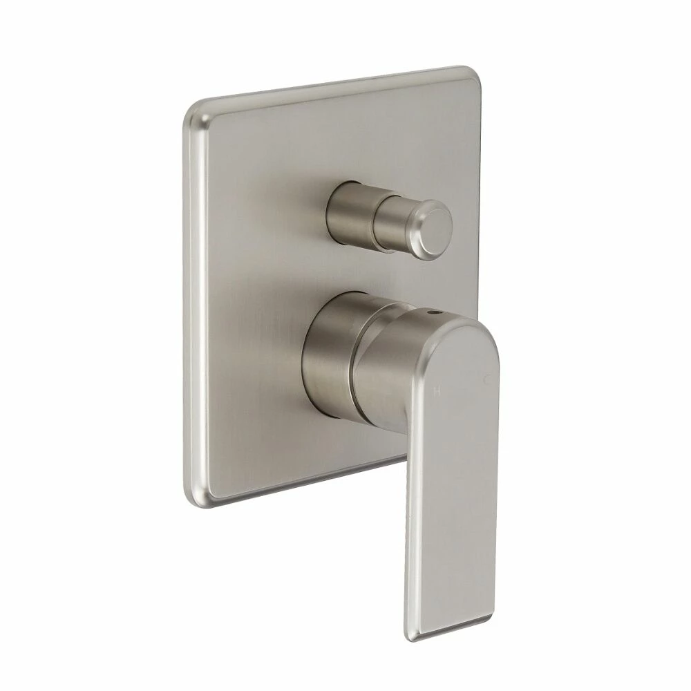 Made from solid brass to ensure great durability, this shower valve supplies water to two outlets, such as a brushed nickel fixed shower head and hand shower. It features a clean modern design and a brushed nickel finish, making it ideal for any modern bathroom. The valve has a single lever handle for effortless control and incorporates ceramic disc technology, which prevents any leaks or drips.