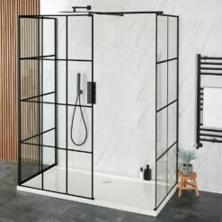 With a black grid pattern and a three sided design, this luxury walk-in shower enclosure is sure to create a look that stands out from the crowd. The glass panels have an 8mm thickness for excellent strength and they measure 1950mm in height, helping to contain more splashes of water when taking a shower.