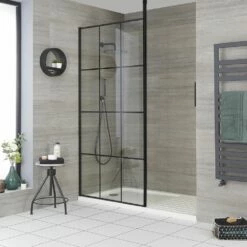 Featuring a black grid pattern, this eye-catching walk-in shower uses 8mm toughened glass for durability and a luxury feel. The floor-to-ceiling pole supports the glass screen and adds a designer touch too. The walk-in shower provides easy access and has plenty of space for a comfortable showering experience.