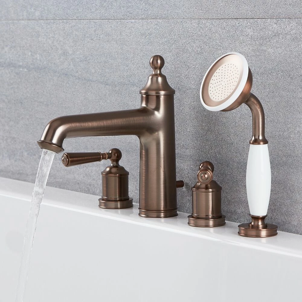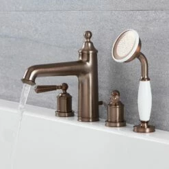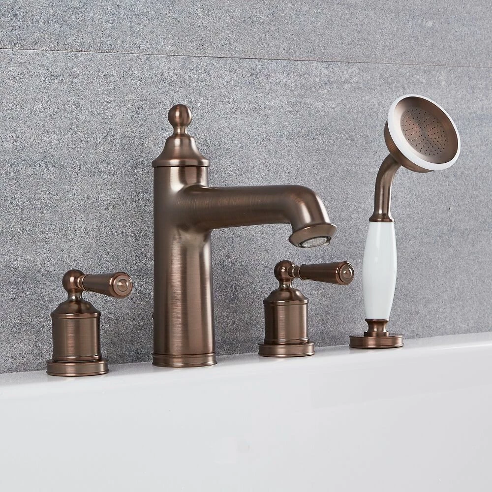 Made from solid brass with an oil-rubbed bronze finish for guaranteed quality and durability, the classic tap design boasts eye-catching smooth lines and ergonomic lever handles for easy control of the water flow and temperature. The attractive pull-out hand shower features 105 concealed nozzles, enabling you to enjoy the luxurious water coverage of a shower whilst sat in the bath.