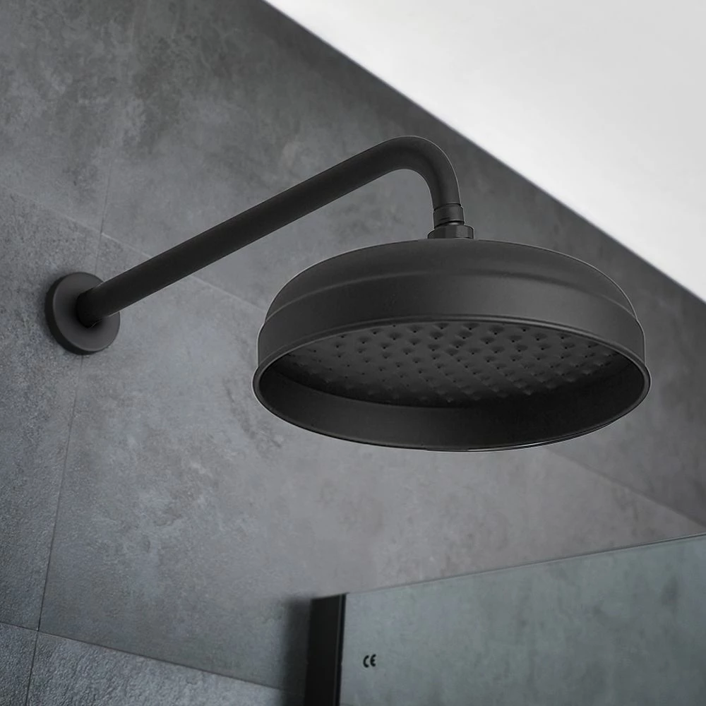 Further enhance your vintage inspired bathroom and enjoy a luxurious shower experience with the Milano Elizabeth matt black 200mm round traditional apron shower head.