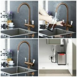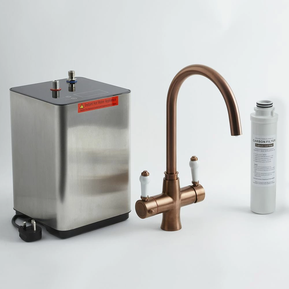 Enhance both the style and functionality of your kitchen with Milano Elizabeth traditional brushed copper 3-in-1 instant boiling hot water tap, complete with 2.4 litre boiler and filter system.