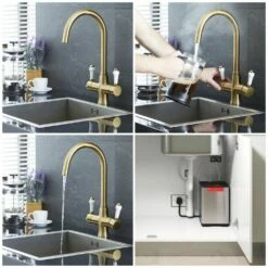 With the Milano Elizabeth gold traditional 3-in-1 boiling hot water kitchen tap you get instant boiling water as and when you need it. The tap comes complete with a 2.4 litre boiler and filter system.