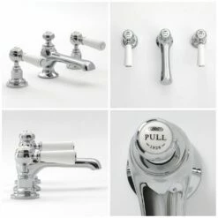 Crafted from solid brass for guaranteed durability, this basin tap features a chrome and white finish for a classic look and stylish ceramic lever handles that provide effortless control. The included waste is easy to operate, thanks to the pull-up rod mechanism featured on top of the spout head.
