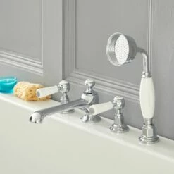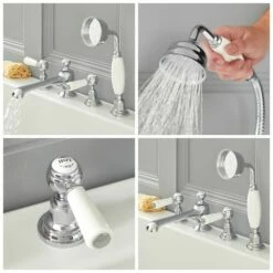 The beautifully designed Milano Elizabeth 4 tap-hole bath shower mixer tap, complete with hand shower, will grace your bathroom with traditional elegance.