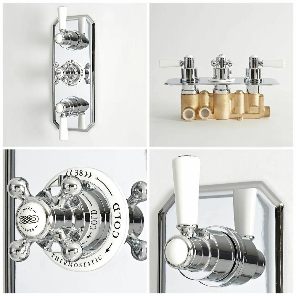 Featuring a stunning traditional design, the Milano Elizabeth concealed thermostatic triple diverter shower valve provides effortless control.