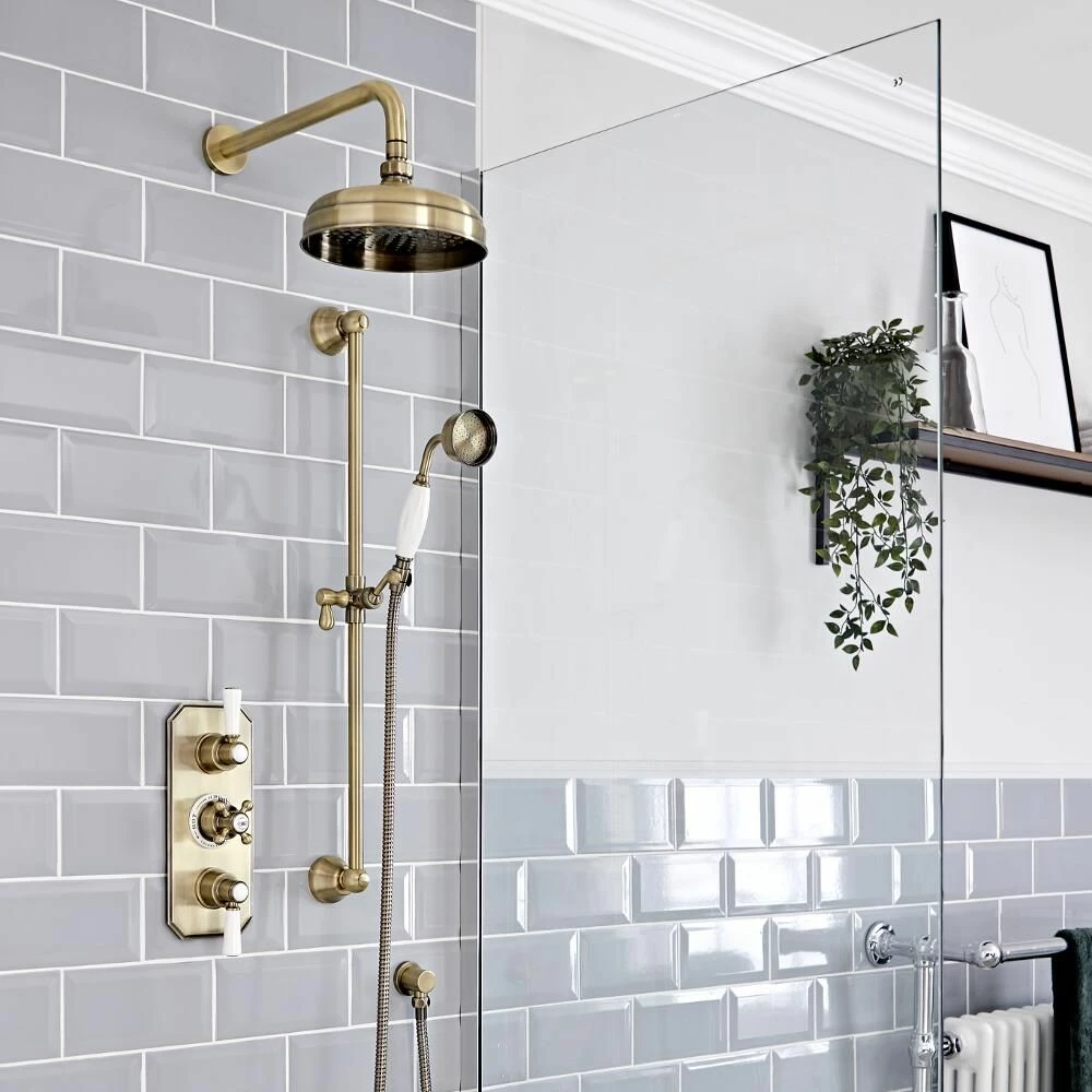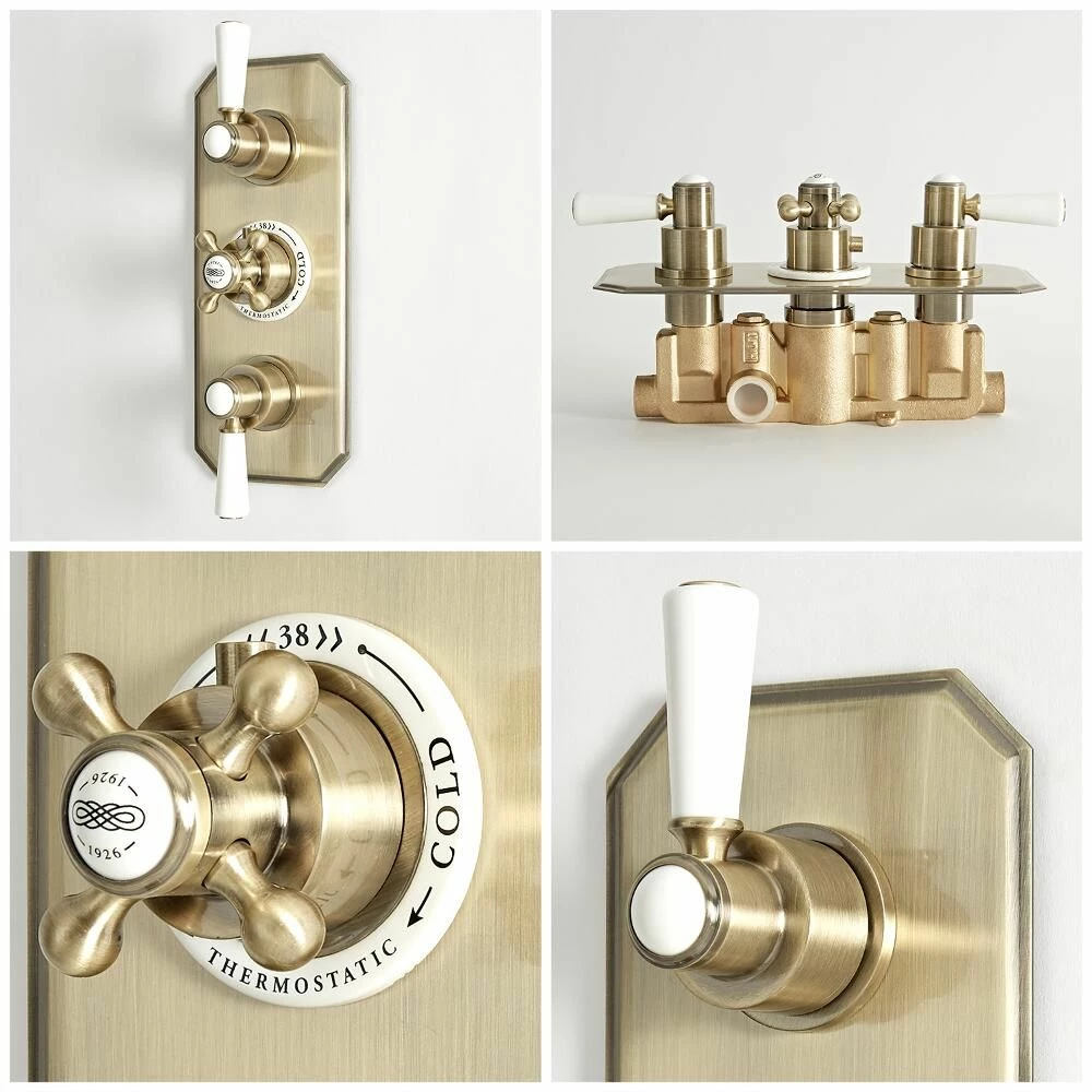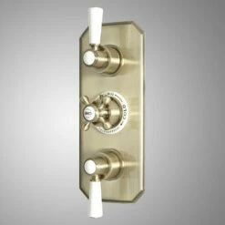 The Elizabeth shower valve has been crafted from solid brass to ensure long-lasting durability. It has a moisture blemish resistant brushed gold finish and white ceramic detailing for a beautiful vintage look that won’t ever go out of fashion.