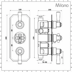 Bring classic and elegant style to your bathroom with the traditional Milano Elizabeth concealed thermostatic triple shower valve.