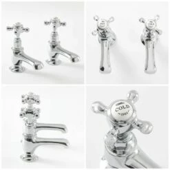 These beautifully crafted basin taps feature a timeless design and a hard-wearing chrome and white finish that complements any bathroom décor with ease. Made from solid brass for a luxury feel and guaranteed durability, these stylish taps, with white ceramic indices, are perfect for use with our traditional style two tap-hole basins.