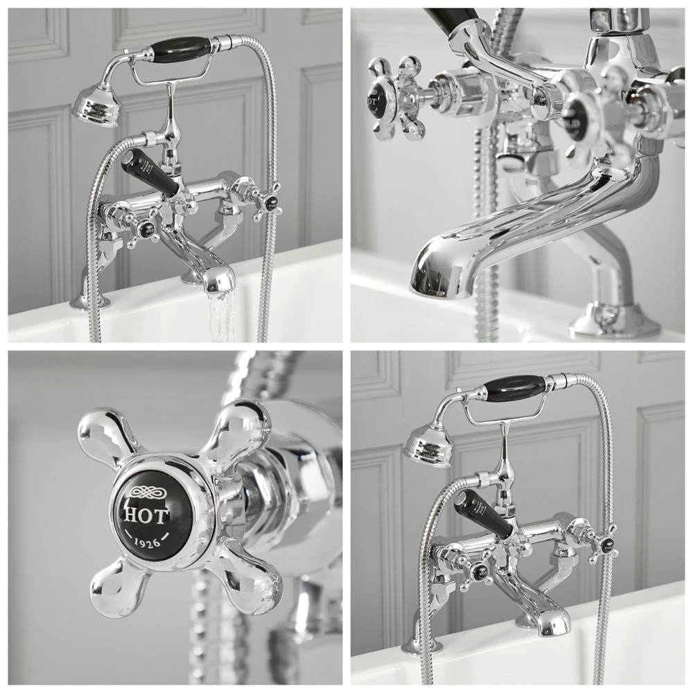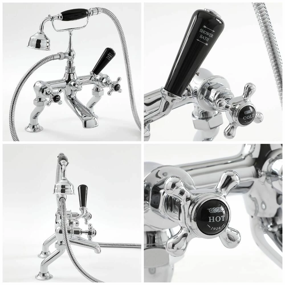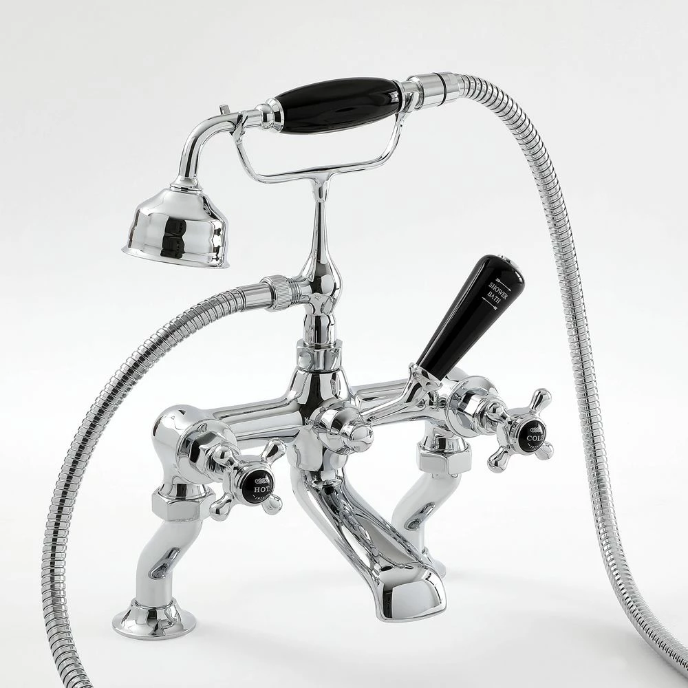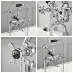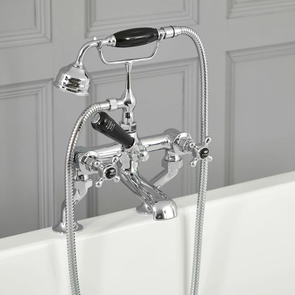 Supplied with the hand shower and 1.5m hose, this bath shower mixer tap has been crafted from solid brass, giving you a long-lasting quality product. It features crosshead handles with black ceramic indices for a luxurious touch. The easy to use ceramic lever allows you to divert the water flow to the bath spout or hand shower.