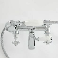 Supplied with the hand shower and 1.5m hose, this bath shower mixer tap features a chrome and white finish and an elegant design, creating a look that will stand the test of time. It’s been crafted from solid brass, so you can be assured of quality and durability. The easy to use ceramic lever allows you to divert the water flow to the hand shower or bath spout.