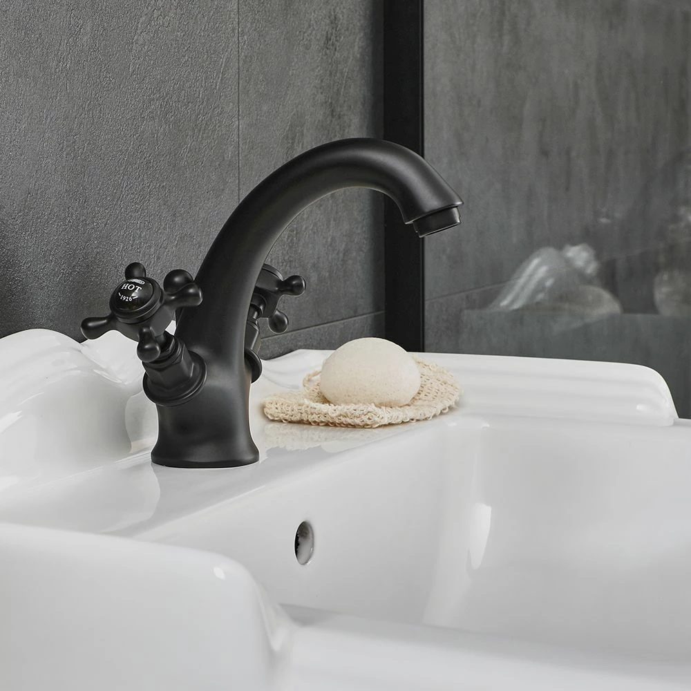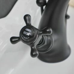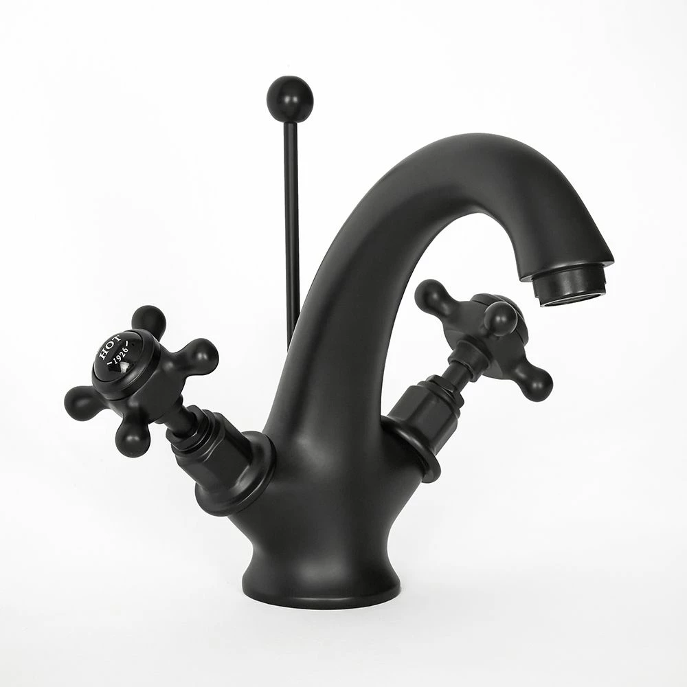 Crafted from solid brass for guaranteed durability, this mono basin tap features a hard-wearing matt black finish and crosshead handles with detailed ceramic indices. The timeless and elegant design will never fall out of fashion, while the black finish brings a touch of drama to your bathroom.