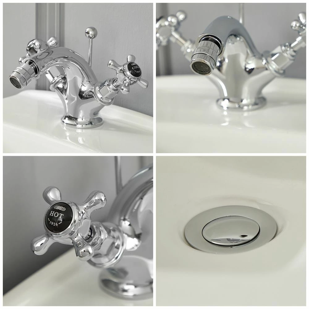 Crafted from solid brass, this bidet tap incorporates ceramic disc technology to prevent leaks and drips. It features stylish crosshead handles with black detailed ceramic indices and a hard-wearing chrome finish that complements any bathroom decor, while the rod mechanism at the back of the tap makes it easy to operate the included waste. Style with one of our traditional bidets for a bathroom that’s full of charm and character.