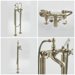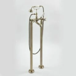 Supplied with the hand shower and 1.5m hose, this elegant bath shower mixer tap features a beautiful brushed gold finish, which is moisture blemish resistant, meaning less annoying water spots. The freestanding bath tap has been crafted from solid brass, so you can be assured of quality and durability.