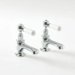 Crafted from solid brass for a luxury feel and guaranteed durability, these basin taps feature stylish ceramic lever handles that provide effortless flow control and a hard-wearing chrome finish that seamlessly blends in with any bathroom décor.