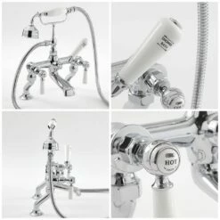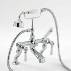 Featuring a classic chrome and white finish and an elegant design, this bath shower mixer tap has been crafted from solid brass, so you can be assured of quality and durability. The stylish ceramic lever handles provide effortless control, while the ceramic disc technology prevents leaks and drips.