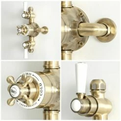 The shower valve has a solid brass construction for guaranteed durability and a moisture blemish brushed gold finish for a stunning vintage look.