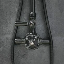 Further elevate the look of your vintage bathroom and enjoy a safe and comfortable shower experience every time with the Milano Elizabeth matt black twin exposed thermostatic shower valve.