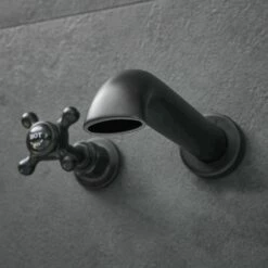 Sure to bring a touch of bold, luxury style to your bathroom, this basin tap features a hard-wearing matt black finish and crosshead handles with ceramic indices. The tap has a wall-mounted design, helping to free up surface space around your basin, creating an uncluttered look.