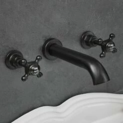 Sure to bring a touch of bold, luxury style to your bathroom, this basin tap features a hard-wearing matt black finish and crosshead handles with ceramic indices. The tap has a wall-mounted design, helping to free up surface space around your basin, creating an uncluttered look.