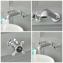 Enhance your traditional bathroom with the Milano Elizabeth wall-mounted 3 tap-hole crosshead basin mixer tap.