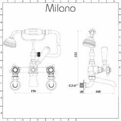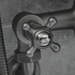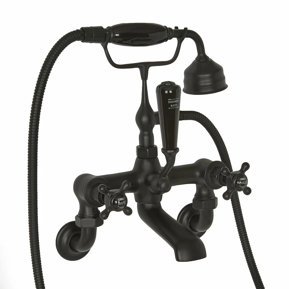Create a look that’s bold yet elegant and sophisticated with the Milano Elizabeth traditional black wall-mounted crosshead bath shower mixer tap, complete with hand shower and 1.5m hose.