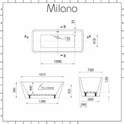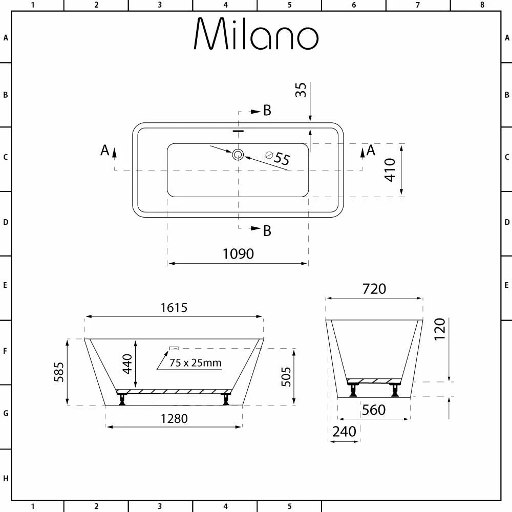 - No tap-holes – suitable for use with wall-mounted or freestanding bath taps only