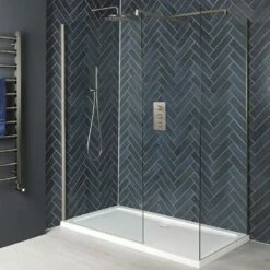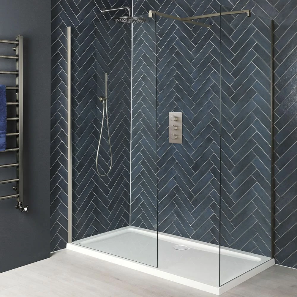 - Milano Hunston – Wet Room Glass Screen with Brushed Nickel Profile x2