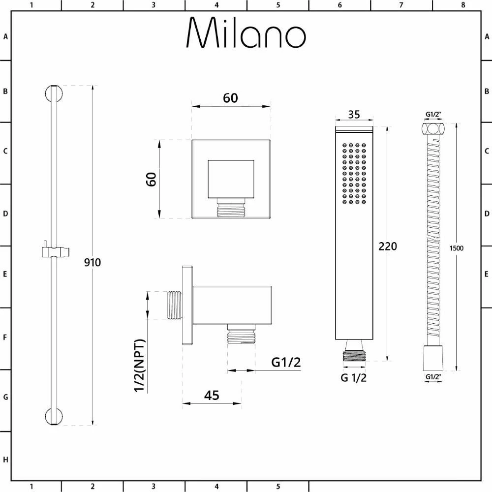 - Milano Hunston – Slide Rail Kit with Hand Shower, 1.5m Hose and Outlet Elbow