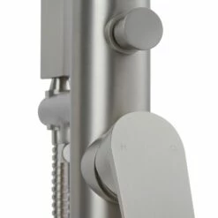 Featuring clean lines and a hard-wearing brushed nickel finish, this bath shower mixer tap incorporates ceramic disc technology to prevent leaks and drips. Supplied with the shower kit for a complete bathing experience, it has a solid brass construction for great durability. The hand shower uses 44 easy-to-clean silicone nozzles, which provide luxurious water coverage and allow you to wipe away limescale deposits with ease.