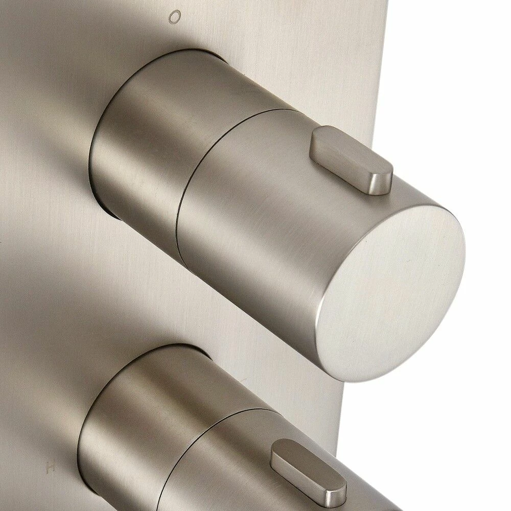 Made from solid brass to ensure great durability, this shower valve supplies water to two outlets, such as a brushed nickel fixed shower head and a hand shower. The thermostatic valve blends the hot and cold water to ensure a constant and safe showering temperature and will automatically cut the water flow if the temperature becomes too high, meaning you and the whole family can enjoy a safe showering experience every time. The valve also incorporates ceramic disc technology, which prevents any leaks or drips