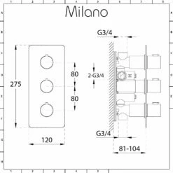 - Dimensions: W 120mm x D 55-80mm x H 275mm