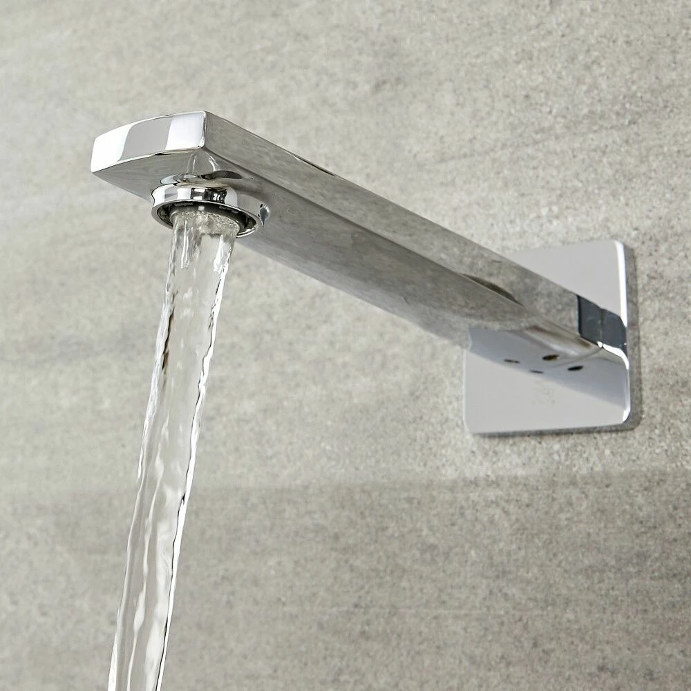 With its stylish geometric lines and hard-wearing chrome finish, the Milano Hunston wall-mounted spout will bring a designer touch to your bathroom.