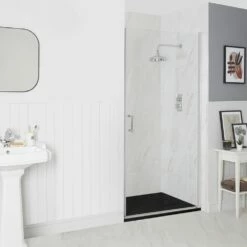 Designed to withstand the rigours of daily use, this robust and sturdy hinged shower door features a minimalist frameless design and a traditional style handle for an elegant touch. It uses 6mm toughened glass for superb strength and durability and is 1950mm in height to help contain more shower splashes.