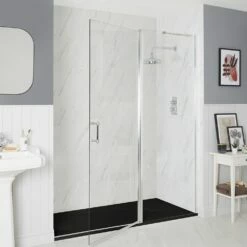The Langley shower door enclosure comes in a choice of sizes to ensure a perfect fit for your bathroom, while the slate tray is available in anthracite, white and light grey finishes – just make your selection from the options above.