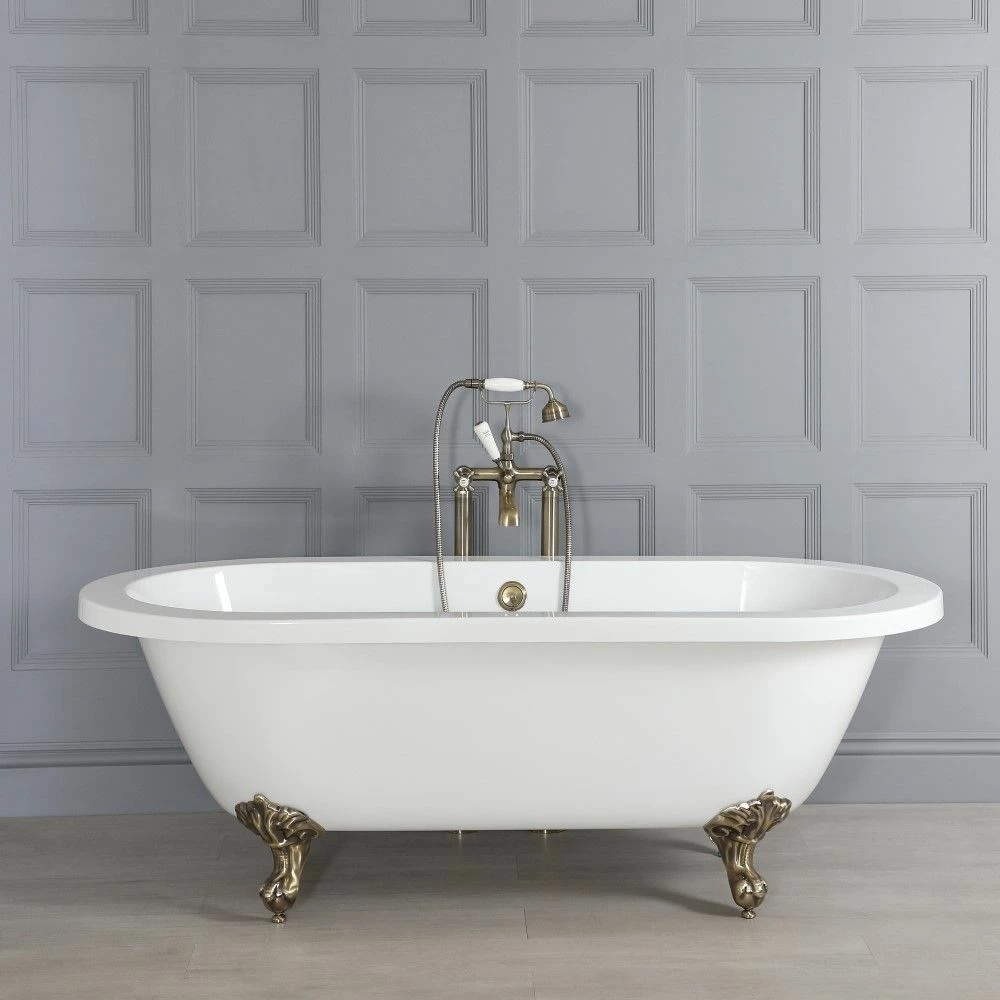 Incorporating plenty of bathing space, this roll top bath has an exceptionally rigid construction ensuring many years of use. Add the finishing touches with the Milano Elizabeth brushed gold deck-mounted, freestanding or wall-mounted bath taps.