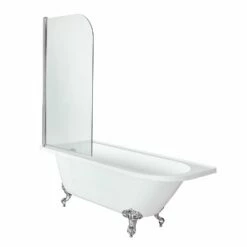Create a truly timeless and elegant look with the Milano Legend 1685mm x 750mm traditional freestanding corner shower bath, complete with glass screen and decorative chrome feet.