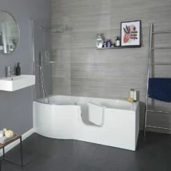 The perfect bath replacement size, this shower tray features a spacious showering area and a hard-wearing surface. It measures just 45mm high for a sleeker look and easy shower access.