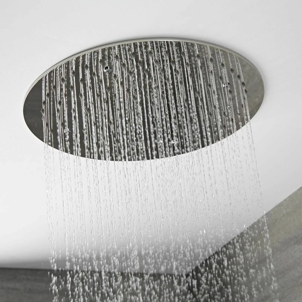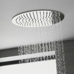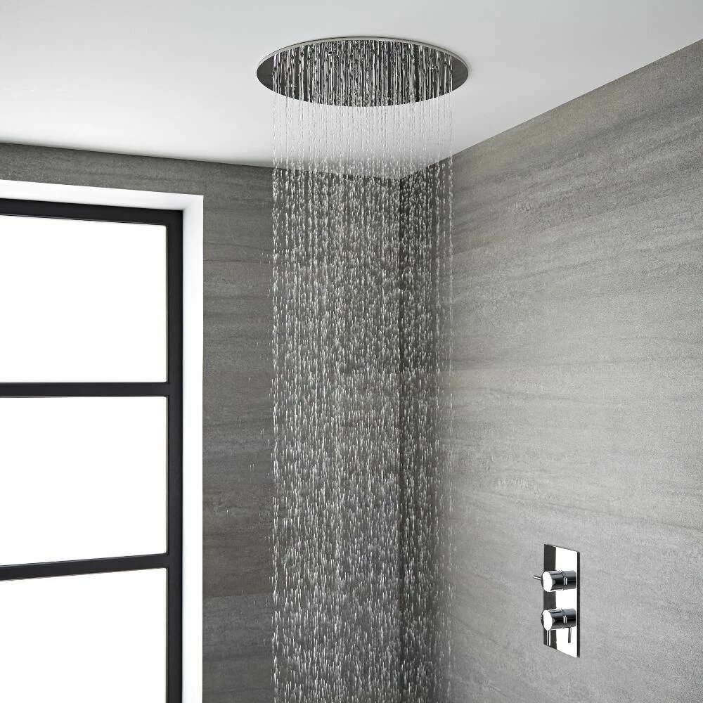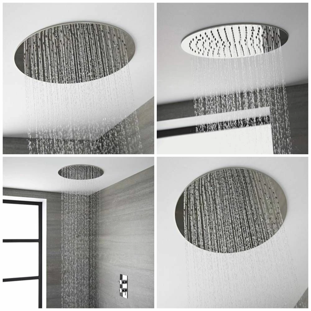 Create a look that’s sleek and minimal with the Milano Mirage 400mm round recessed ceiling shower head.