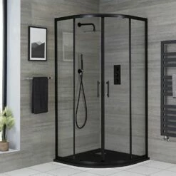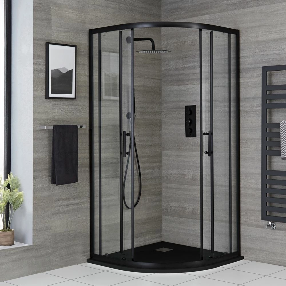 Bring stunning designer style to your bathroom with the Milano Nero complete black quadrant shower enclosure with slate effect tray and fast-flow waste.