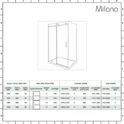 - Milano Nero – 800mm Frameless Shower Side Panel