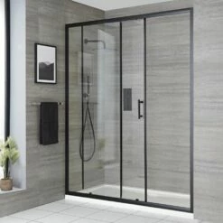 The Nero black sliding shower door and tray comes in a choice of sizes to ensure a perfect fit for your bathroom, (the 800mm and 900mm size options feature a triple sliding door) – just make your selection from the dropdown options above.